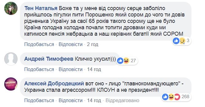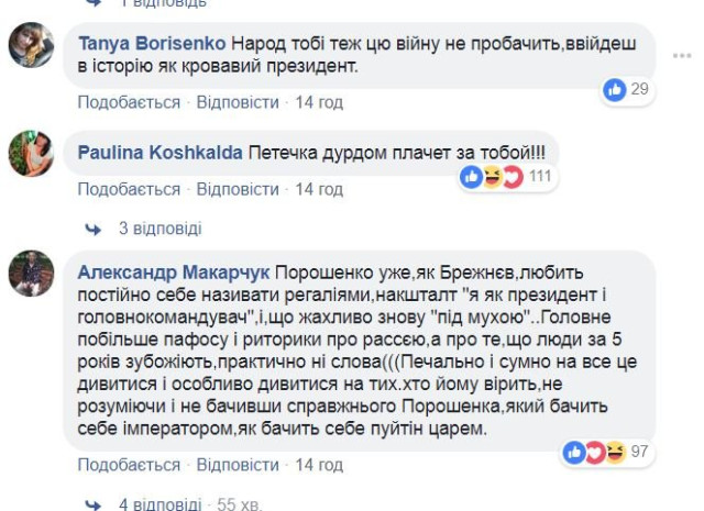 Cuvintele lui Poroșenko au stârnit râsul autorului filmulețului şi a celor prezenţi, dar și un val de comentarii negative din partea internauților ucrainenei.